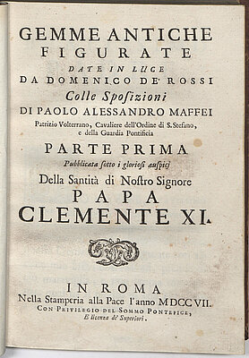 [3] Paolo Alessandro Maffei: Gemme antiche figurate, 4 Bde., Rom 1707–09, Parte prima (1707), S. xiii, URL: http://polona.pl/item-view/5eb394b4-a676-4858-acba-59089bbd06bc/0/827af8d0-1d01-47bd-a4a1-2b2d87961b0f (letzter Zugriff am 17.9.2025).
