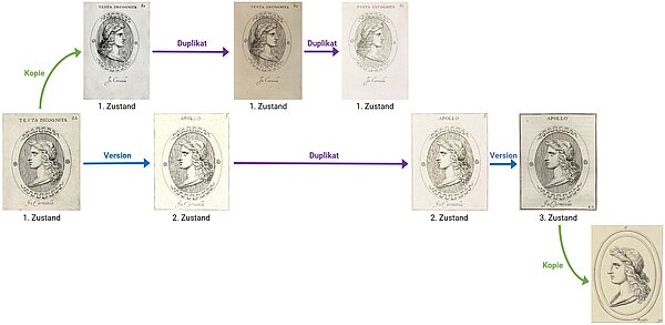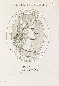 Dass die Gemmen auch in gedruckter Form ein weites Publikum erreicht haben müssen, zeigt die große Zahl an Neudrucken und Kopien von Agostinis Werk in den darauffolgenden Jahren noch bevor sich Maffei ab 1707 seiner Neuausgabe widmet. Auf welche Weise dabei die einzelnen Platten und die darauf abgebildeten Gemmen Veränderungen erfuhren, wird im Folgenden exemplarisch am Portrait eines jungen Mannes nachvollzogen.